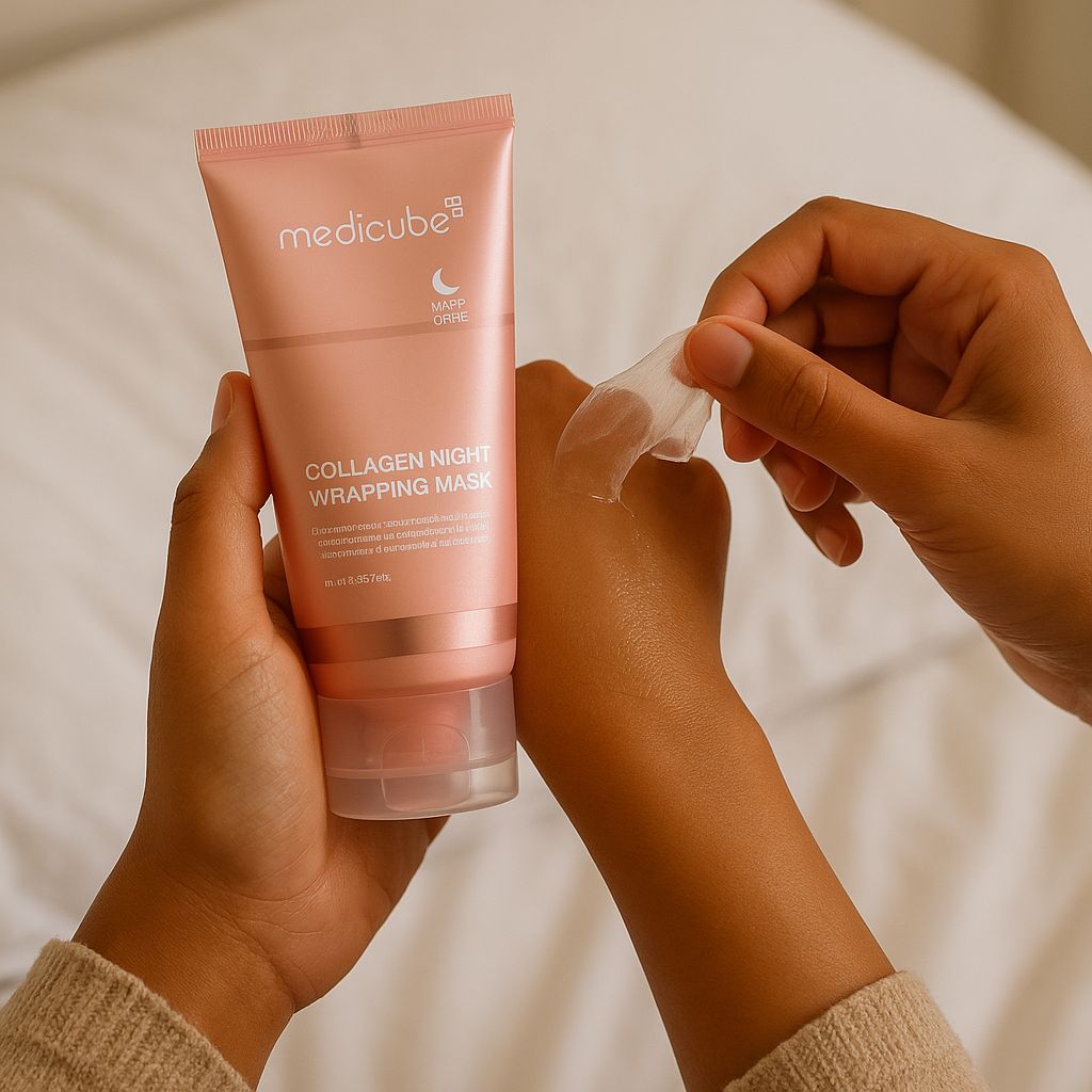 استيقظ على بشرة أكثر تماسُكاً و ترطيباً مع قناع النوم بالكولاجين المركز من Medicube. تركيبة فريدة تُشكّل على البشرة فيلم كولاجين رقيق يحافظ على المرونة و يمنح إشراقة فورية خلال النوم.